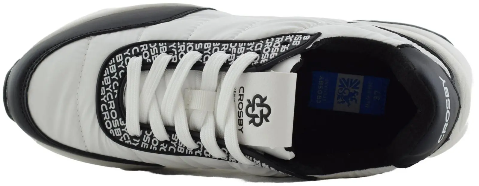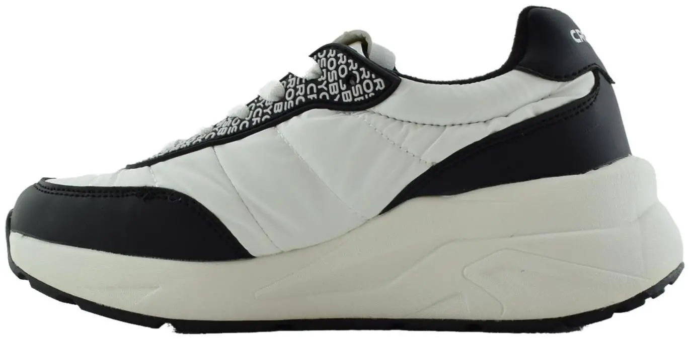Эти трендовые черно-белые женские кроссовки Crosby выполнены из стеганого нейлона и высокотехнологичной экокожи. Кроссовки украшены вставкой с текстовым принтом в области шнуровки.