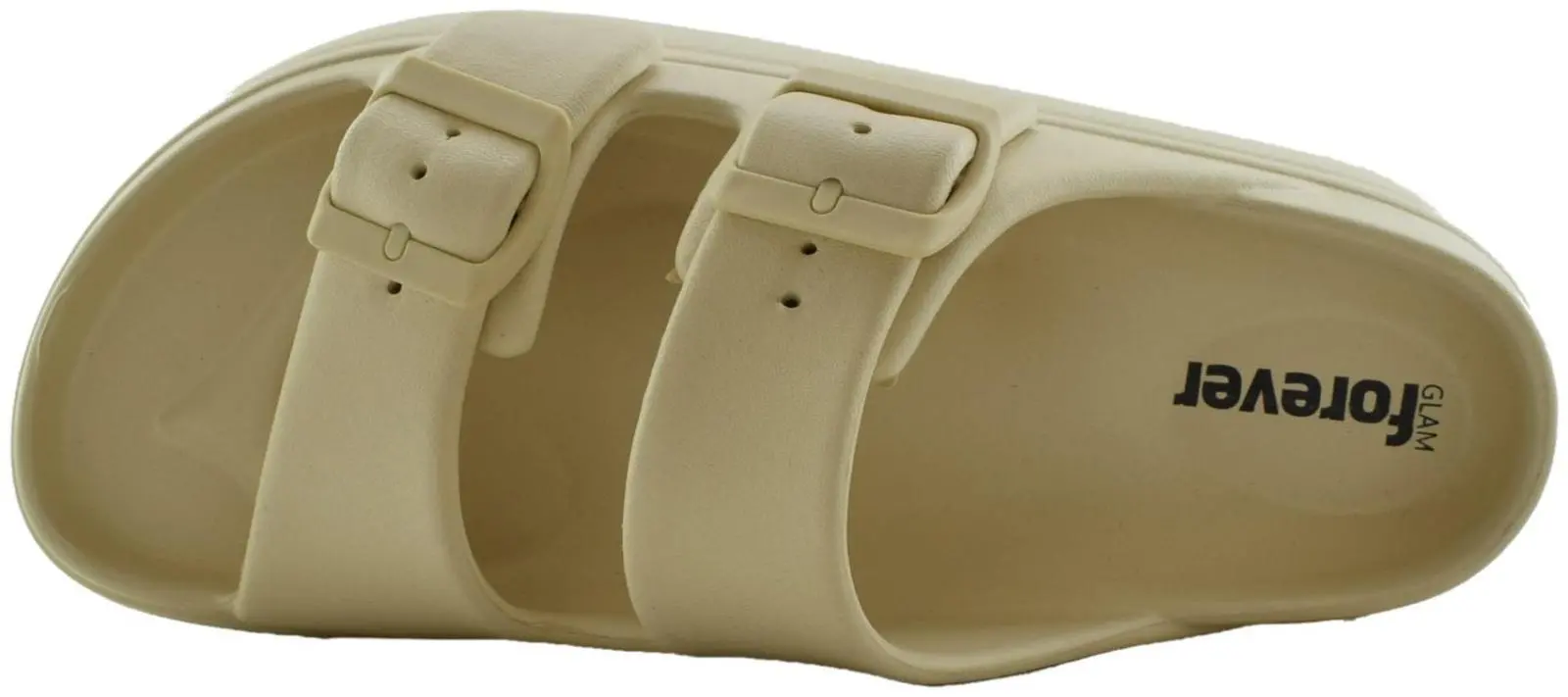 Для отдыха у моря отлично подойдут шлепанцы биркенштоки GlamForever в актуальном светлом оттенке.