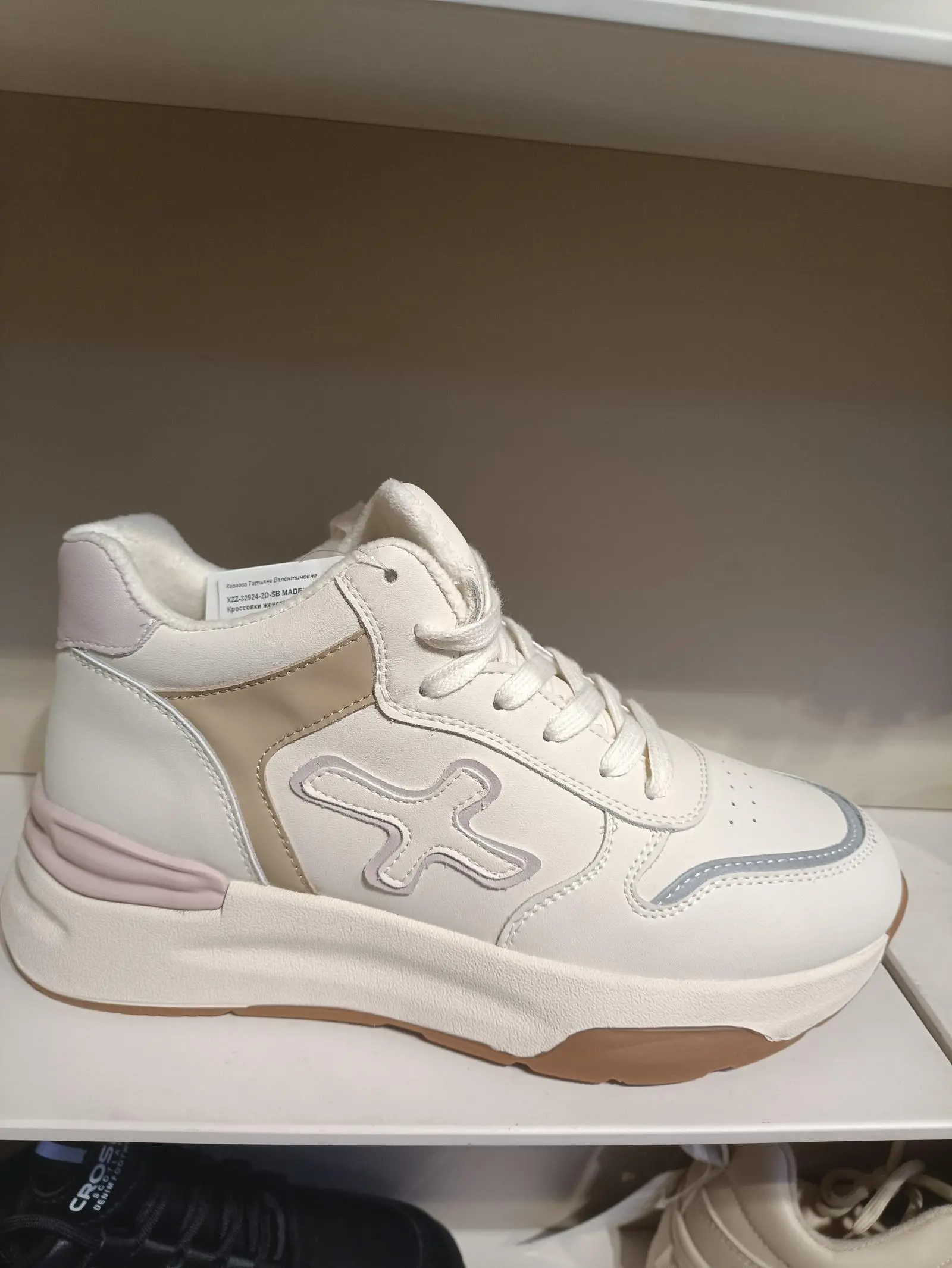Кроссовки выполнены с применением байковой подкладки, которая обеспечивает дополнительное тепло и комфорт. Резиновая подошва гарантирует надежное сцепление с различными поверхностями, делая обувь подходящей для городских прогулок и повседневной носки.