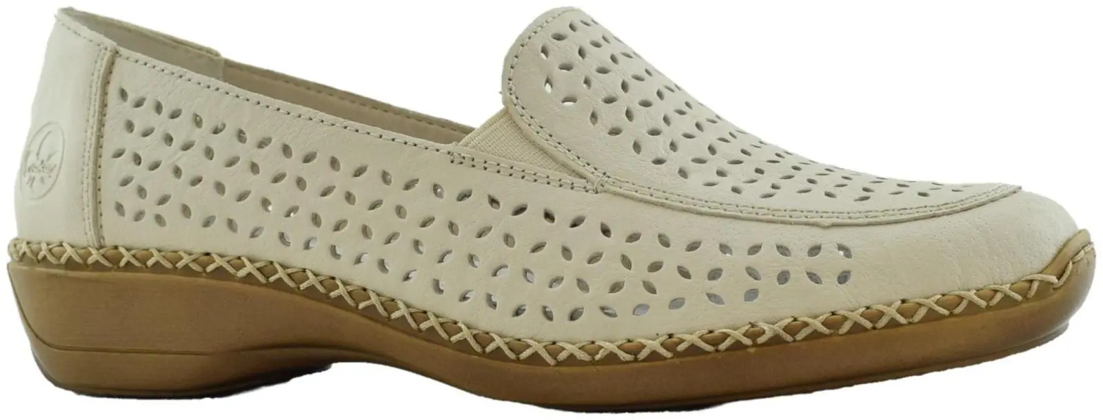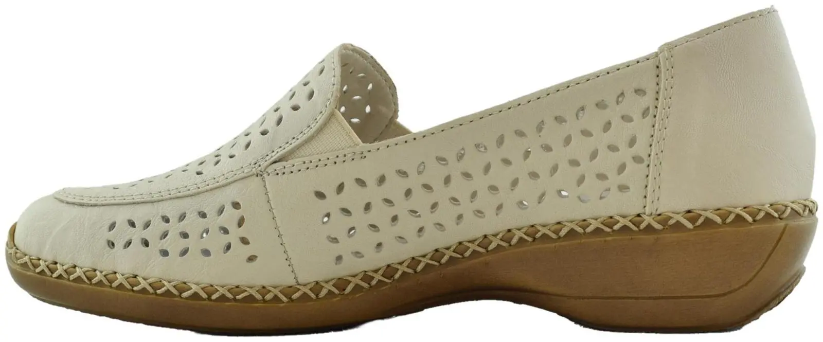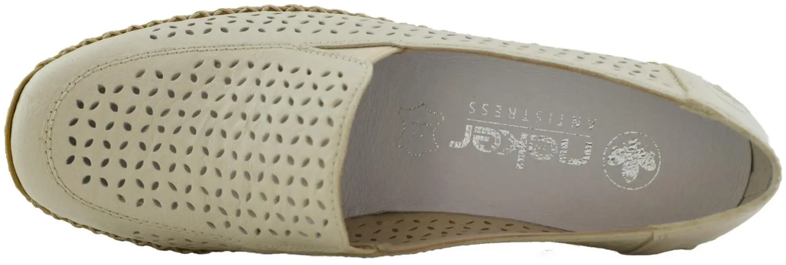 Верх этих слипонов выполнен из натуральной и экокожи в бежевом цвете, а внутренняя подкладка - на искусственной коже.