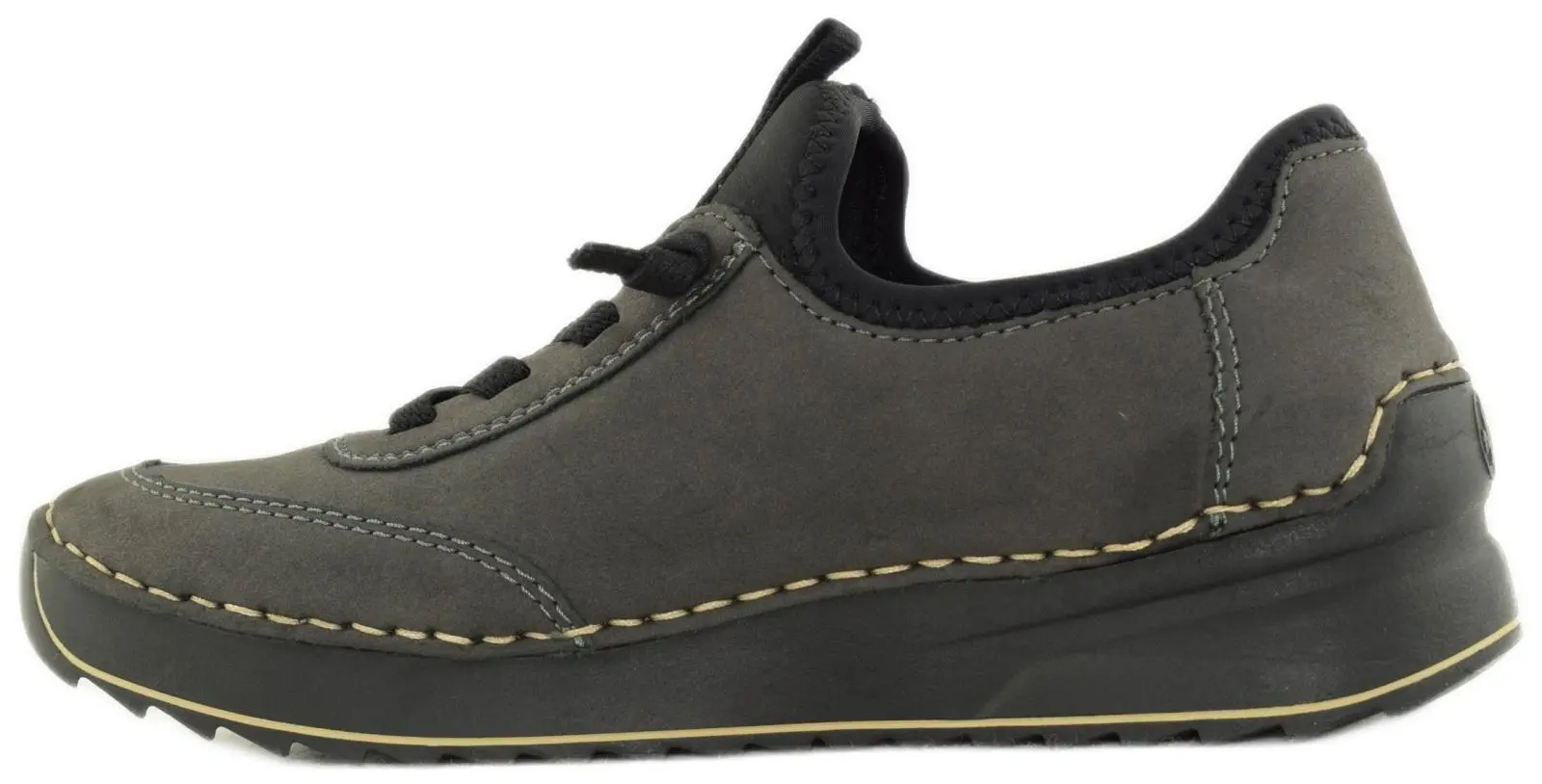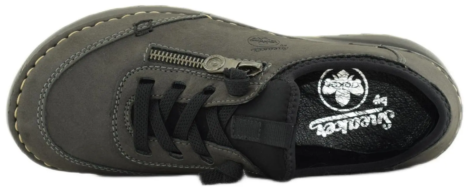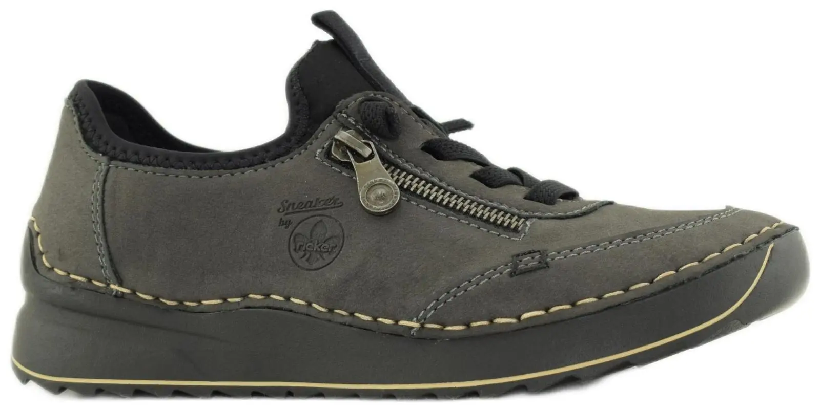 Женские кроссовки Rieker серого цвета. Верх кроссовок выполнен из экокожи - качественного материала нового поколения - дышащего, воздухопроницаемого, износостойкого. Текстильная подкладка создаёт комфортное ощущение и благоприятный микроклимат внутри обуви. Мягкая стелька из натуральной кожи обеспечит максимальный комфорт при носке, подстраиваясь под форму Вашей стопы. Подошва из полиуретана лёгкая, гибкая, стойкая к истиранию, отлично амортизирует и значительно снижает ударную нагрузку на суставы при ходьбе. Прошивной метод крепления подошвы очень надёжный и гарантирует долгий срок службы обуви. Благодаря эластичному язычку и резиновому шнурку, модель подойдёт на любой подъём, а широкая носовая часть подарит комфорт для пальцев ног. Металлический замок с внешней стороны кроссовок является декоративным элементом, изящно украшающим модель. Благодаря лёгкости и удобству колодки Antistress, эти кроссовки станут прекрасным выбором для повседневной носки.
