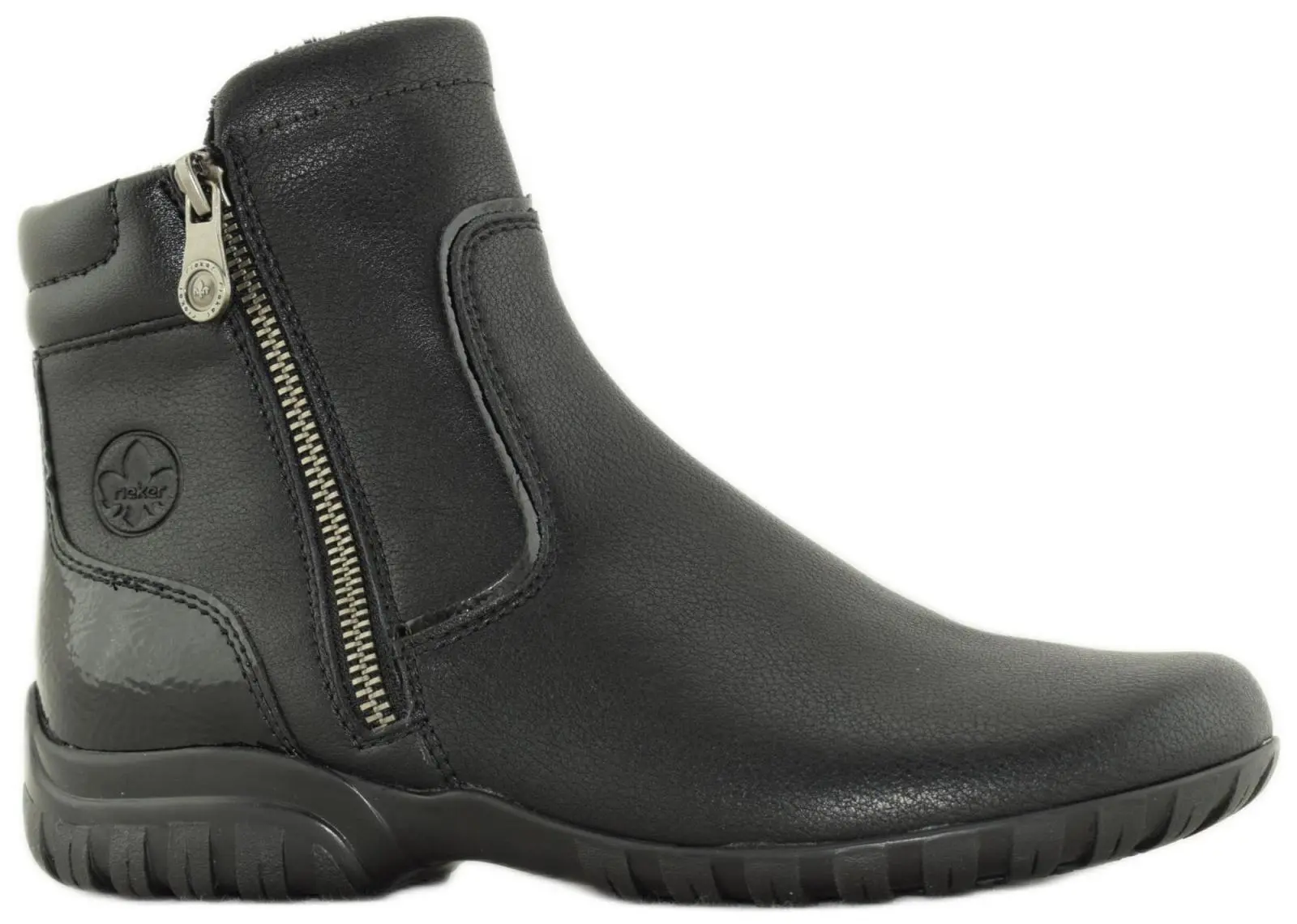 Женские демисезонные ботинки из новой коллекции бренда Rieker Antistress чёрного цвета. Верх ботинок выполнен из высококачественной экокожи, которая изготавливается путём нанесения микропористой дышащей плёнки (прочный и износостойкий полиуретан) на хлопковую тканевую основу. При эксплуатации полиуретан не выделяет никаких токсичных веществ и абсолютно безопасен. Экокожа является гипоаллергенным материалом нового поколения. Ее отличительные свойства: стойкость к стиранию, эластичность и мягкость, воздухопроницаемость, износостойкость и долговечность, простота в уходе и чистке. Подкладка из велюра, который создаёт мягкость, тепло и приятные тактильные ощущения. Анатомическая стелька и специальная колодка Antistress обеспечивают удобство и обеспечивают сниженную нагрузку на стопу и позвоночник. Подошва выполнена из резины - материала, обладающего высокой износостойкостью, гибкостью, хорошей амортизацией, имеет отличное сцепление с любой поверхностью, не скользит.