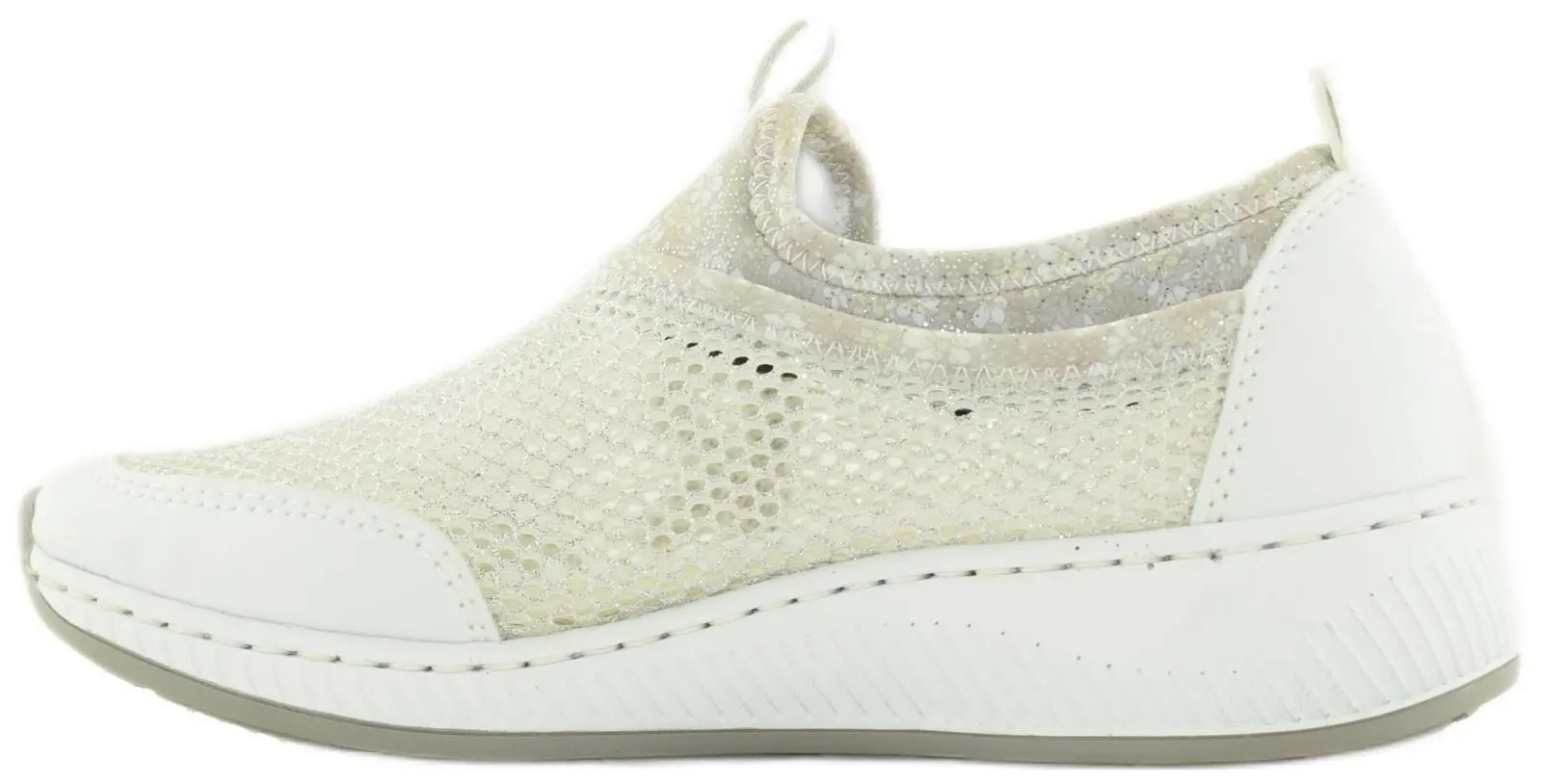 Стильный серебряный оттенок добавляет изюминку любому образу, а легкость и гибкость кроссовок делают их подходящими для длительных прогулок и активного дня.