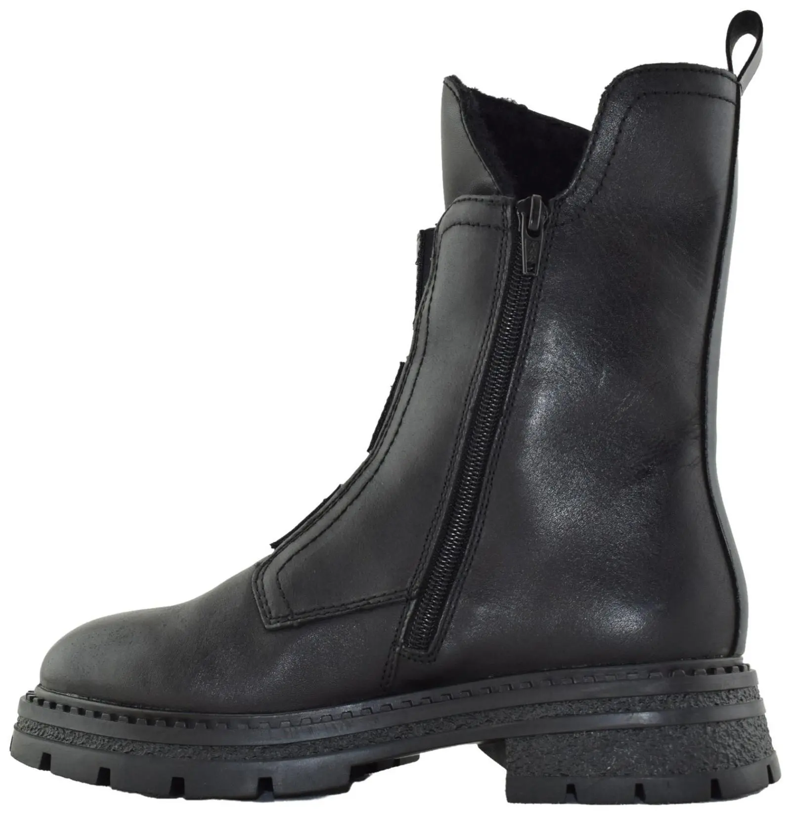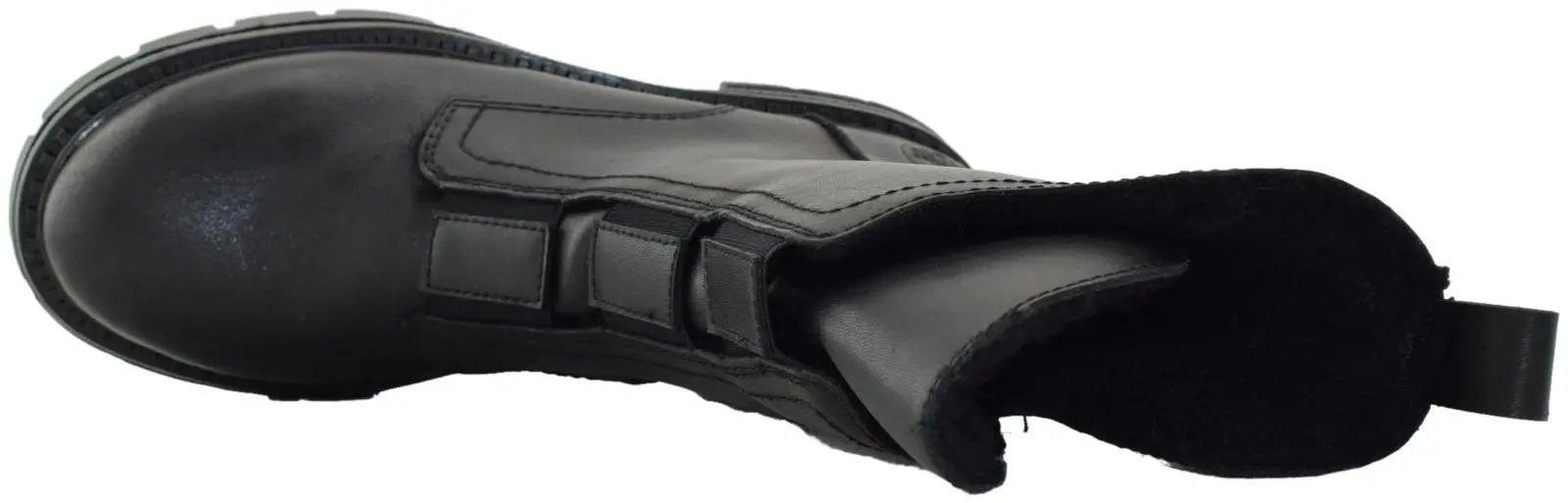 Верх этих ботинок изготовлен из натуральной и экокожи в черном цвете, а внутренняя подкладка - на шерсти.