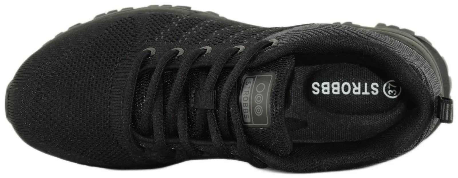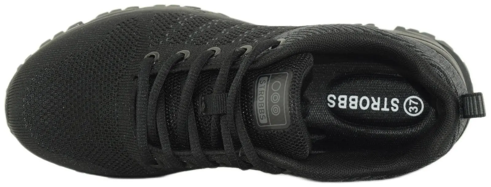 Удобные женские кроссовки черного цвета от бренда Strobbs (Строббс) предназначены для ежедневного использования и для занятий спортом. Верх кроссовок выполнен перфорированного текстиля, благодаря чему кроссовки дышат. На пятке есть удобная петля для легкого надевания кроссовок. Средний слой подошвы произведен из вспененного полимера, обладает хорошей амортизацией и смягчает ударную нагрузку при ходьбе или беге. Основной нижний слой подошвы выполнен из износостойкой резины с рельефным протектором, который обеспечивает хорошее сцепление с поверхностями и продлевает срок службы обуви.