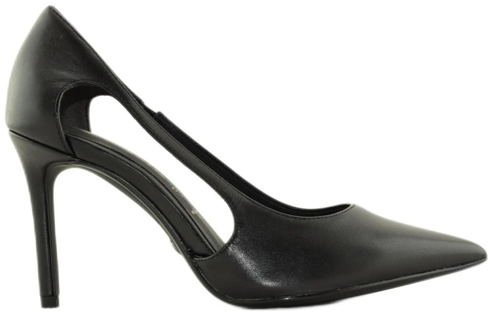Высокий 9 см каблук шпилька и фигурные вырезы подчёркивают изящество стопы и заботятся о превосходном комфорте.