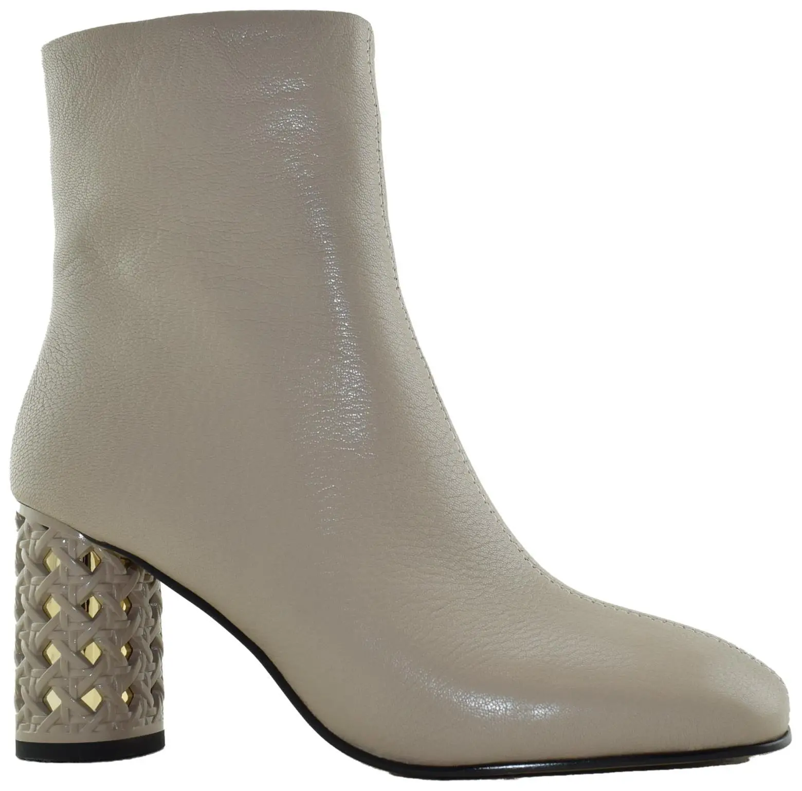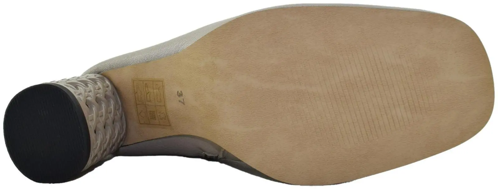 • Высокий каблук-столбик с декоративной отделкой плетением