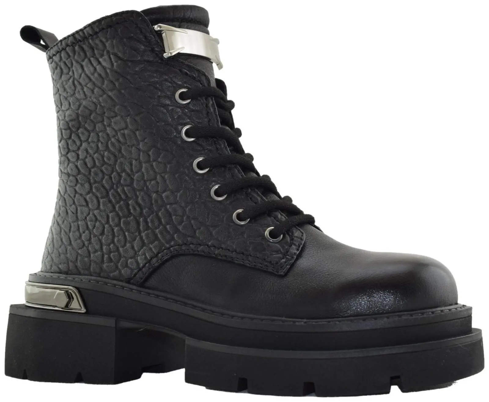 Пара выполнена из натуральной фактурной кожи на многослойной подошве с протектором, которая защитит от холода и грязи.