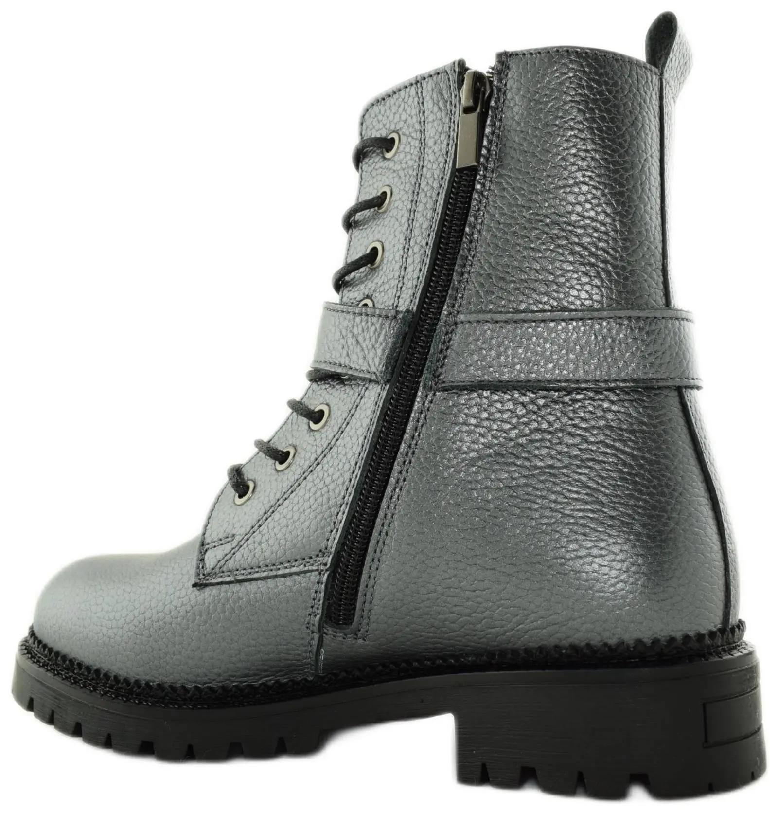 Женские ботинки от российского бренда Lady Liga. Верх этой модели выполнен из натуральной кожи в серебристом цвете, подкладка - из байки. Отлично подойдут для демисезонной погоды и станут неповторимым дополнением к Вашему образу.
